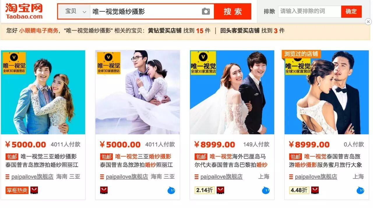 导读:不扯淡,管它O2O、C2C还是共享经济,今天我只想对咱做婚纱摄影(含摄影大类)的老板们聊一件在天猫(淘宝和天猫是一家)上赚钱的事儿!