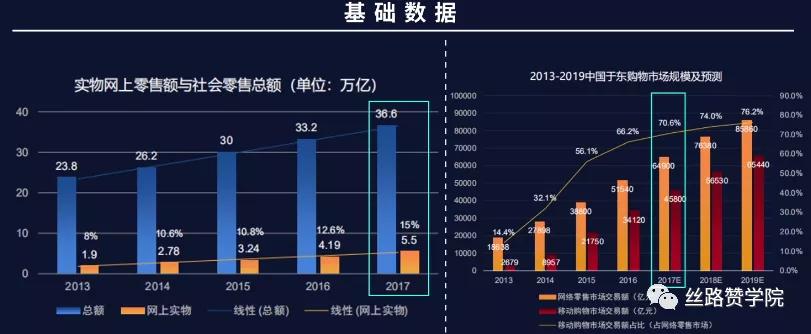 通过亿邦动力的数据,我们了解到2017年的时候,网络购物在整体社会消费品零售中只占了15%,还有着巨大的上升空间。