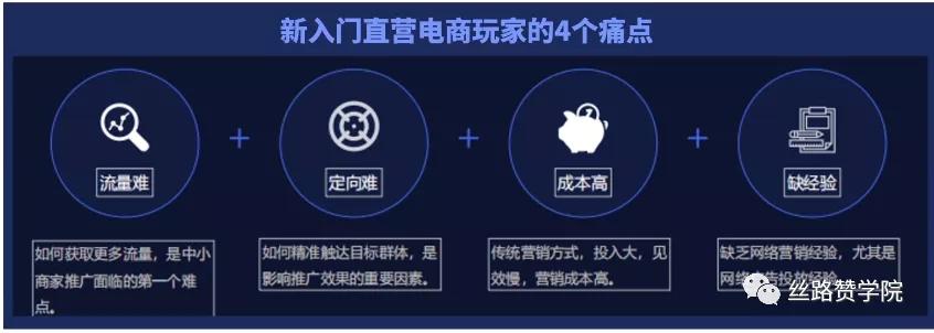 新入门的直营电商玩家有4个痛点:流量难、定向难、成本高、缺经验。