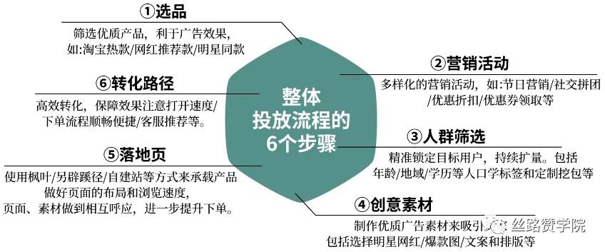 最后,总结下来,我们的整体投放流程可以分6个步骤来处理,做好每一步的选择以及数据把控,是我们制胜的法宝!