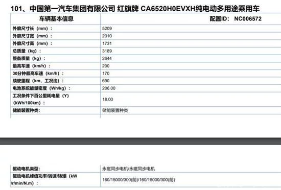 日前,我们从工信部获取了新款红旗E-HS9动力信息。根据曝光的消息来看,新车最大变化在于NEDC续航里程达到了690km,相较现款车型510km续航里程有着明显提升。