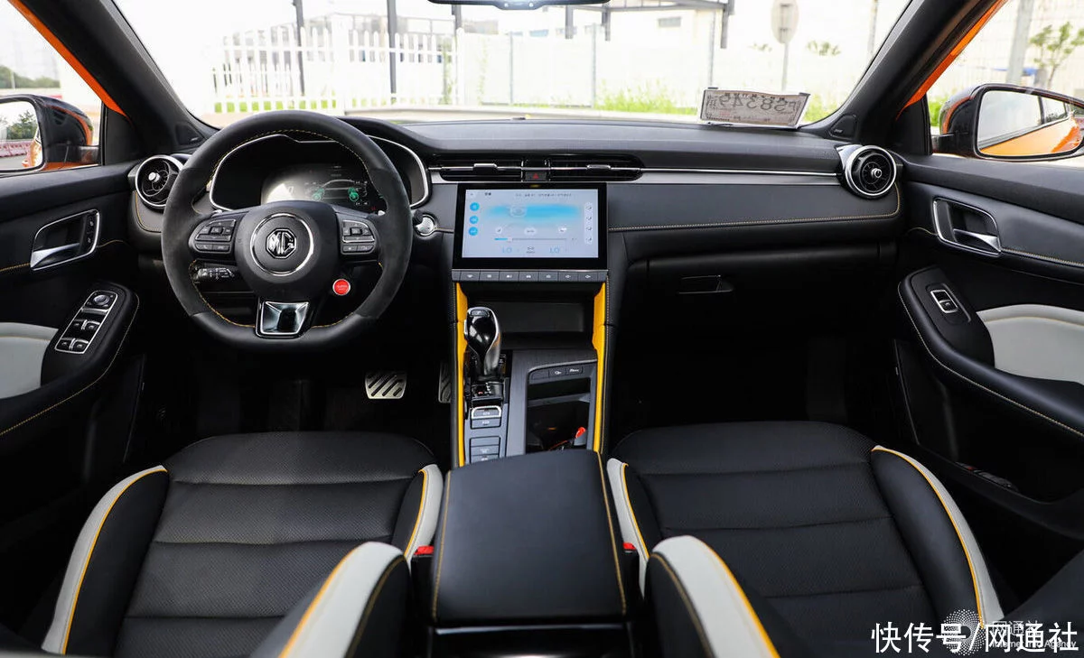 第三代MG6 PRO在原有基础上进行了运动化升级,呈现出极强运动风格。中控大面积黑色搭配少量黄色元素点缀,让内饰更显年轻。小尺寸平底方向盘采用ALcantaea材质包裹,红色“SUPERSPORT”按钮与换挡拨片的加入能够激起欲望。值得注意的是,第三代MG6 PRO配备了一体式座椅,在激烈驾驶时能够提供良好的支撑。