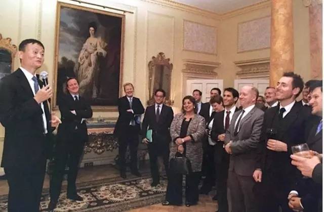 2015年10月19日,马云被授予英国商业顾问头衔后来到唐宁街10号,在场人士包括英国前首相卡梅伦(左二)和邓肯?克拉克(右三着浅色西装者)。图片来源:唐宁街10号。