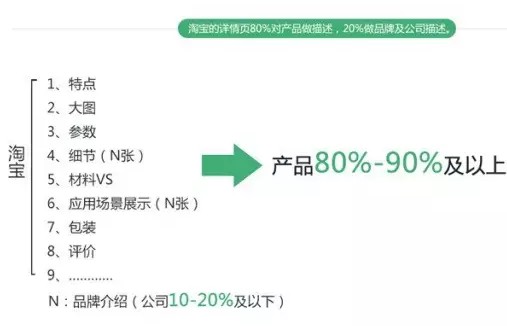 淘宝的详情页80%对产品做描述,20%做品牌及公司描述。