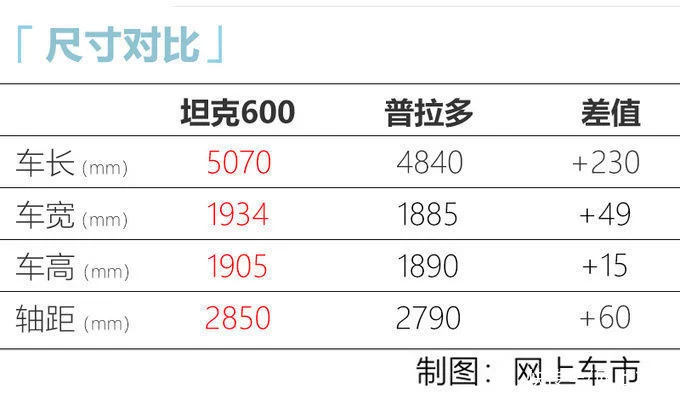 近日网上车市获取到一组坦克600的实车图,新车计划将在8月29日正式发布。坦克600车身长度超过5米,轴距达到2.85米,整体尺寸介于丰田普拉达与兰德酷路泽(国内称之为陆巡)之间。动力上,新车最大的亮点莫过于搭载自主研发的3.0T+9AT动力总成,最大扭矩达500Nm。售价方面,预计坦克600售价会在30-40万之间。