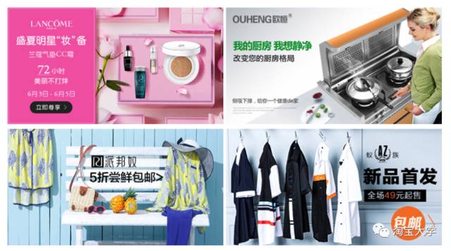 这种banner比较是适合店铺内清仓掉一些断色断码的产品之类的尾货、节日或大型活动的促销活动,对于品类的要求没有过多的限制。