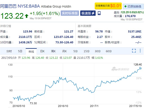 2017年5月19日,美国巴伦周刊发表题为《为什么阿里巴巴这个庞然大物能够持续创下新高?》的分析文章,预期股价将进一步发力并会在今年创下新高。