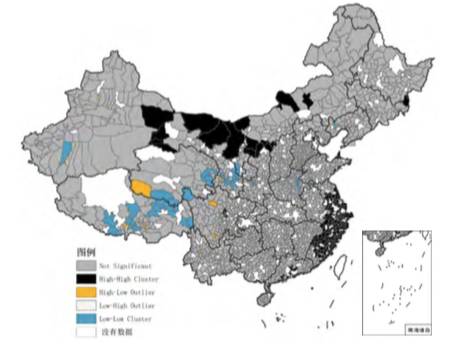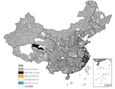 由于县域电子商务本身具有较强的邻近扩散效应,因此可以根据局部空间自相关结果识别出了县域电子商务集聚发展区域。