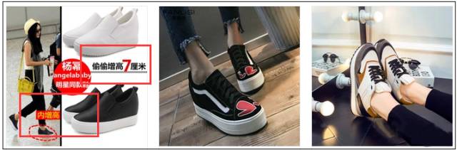 那么,当消费者在搜索的时候,如果在你的首图上明显体现了“内增高”和“增高效果”这个属性,至少在这个关键词上,和其它的首图相比,点击率会更高。比如下面的图:
