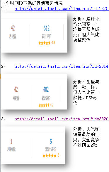 B丶 对同个时间段内的3款宝贝分析如上图;相对而言后面两款的竞争力较小,