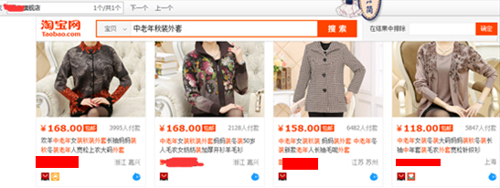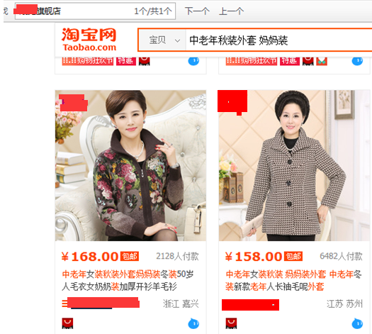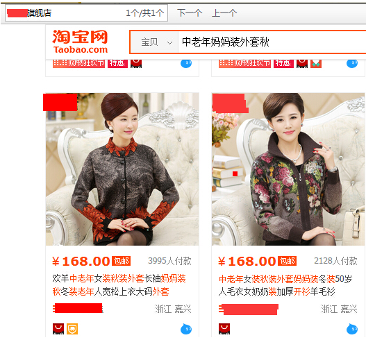 在前4页找到的仍是刚刚“中老年女装”2款宝贝