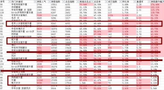 虽然产品线的宽度与深度较浅,但是中老年类目的关键词还是比较多的,但是不查不知道,一查吓一跳。我们店铺内宝贝标题的相似度较高,结果无形中造成了我们宝贝关键词的内部竞争。