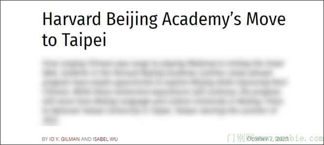 10月7日,哈佛大学学生刊物《克里姆森报》独家报道称,从2022年起,该校推动的暑期中文学习项目将从北京搬到台北,与台北大学合作,而“哈佛北京书院”也将改名为“哈佛台北书院”。