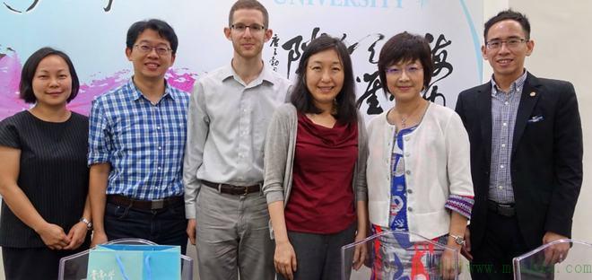 哈佛大学中文语言项目主任刘力嘉(左四)2017年在台北大学参加研讨活动,图自台大社交帐号