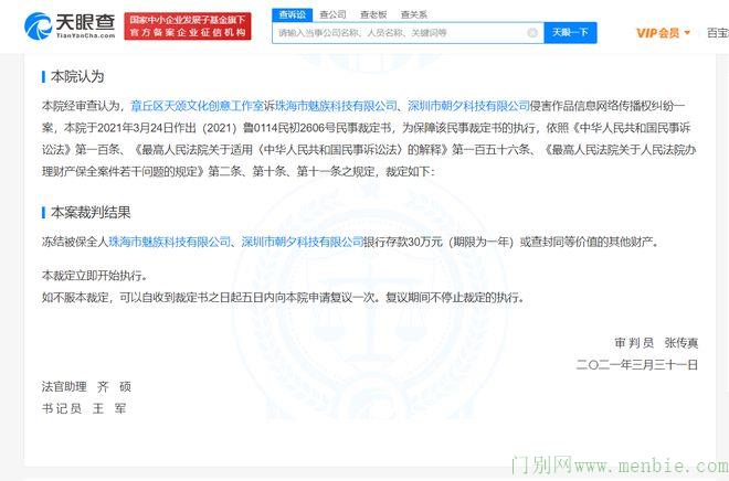 魅族等公司被冻结30万存款 涉及作品信息网络传播权纠纷 _卖家业界观察_门别网