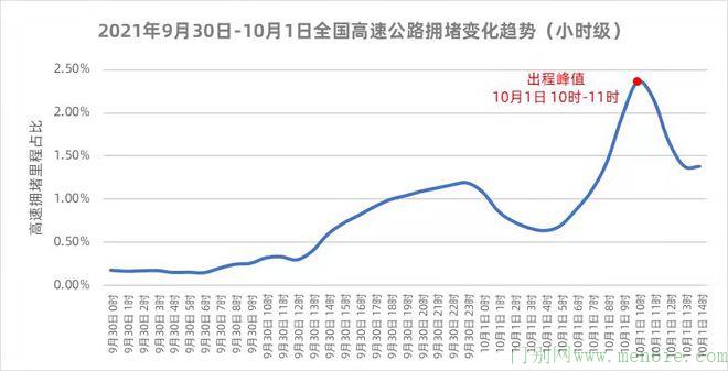 10月2日消息,根据高德交通出行大数据,10月1日上午9时到12时为高速出程高峰,峰值出现在10时-11时。