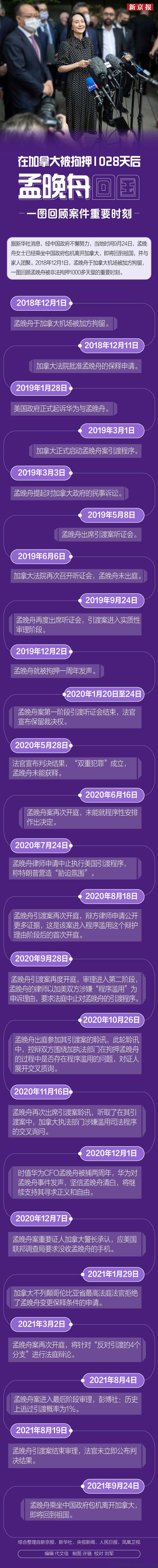 在加拿大被拘押1028天后,孟晚舟回国!一图回顾案件重要时刻![]() ![]() |