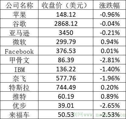 具体来说,美股中的主要科技股表现如下: