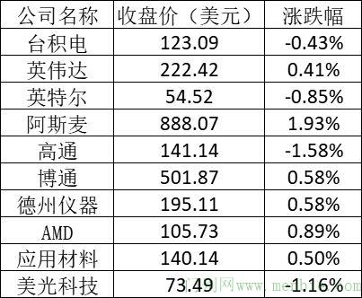美股中的主要芯片股表现如下: