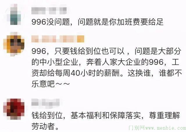 然而说到“996”工作制,网友并非一面倒地批评,也有人无奈、有人表示理解, 称只要给够加班费,996没问题。