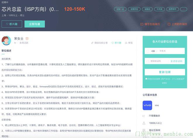 近期,社交平台显示,vivo近期发布了多个芯片相关的招聘岗位,其中ISP方向芯片总监开出的年薪高达144W-180W。