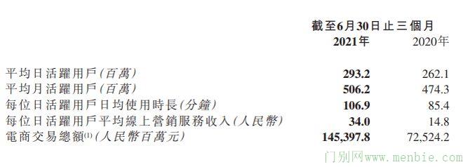 2021年第二季度,快手应用的平均日活跃用户为2.932亿,同比增长11.9%;月活跃用户为5.062亿。日活用户日均使用时长为106.9分钟,首次超过100分钟,环比增加7.7%。