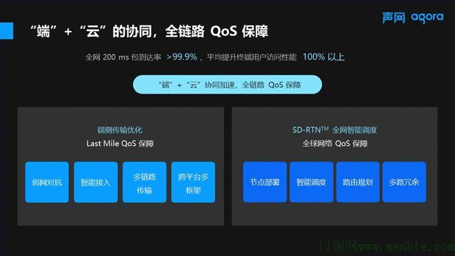 声网表示,声网已为全球服务超过33.7万+应用,累计支撑超过1万亿的实时音视频分钟数,充分验证了SD-RTN具备高速、稳定、可靠的全球网络能力,在此基础上声网正式推出了全链路加速FPA(Full-Path Accelerator),通过为互联网增加QoS,为企业的业务应用提供具备QoS保障的全球端到端网络传输服务。