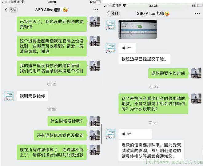 同在ABC360消费的家长王女士则称,她向ABC360提出退款请求后,课程班主任Alice告诉她已经申请退款,“但他们始终没提供申请证明,也没告知退款时间,只说已经申请了,要排队。”