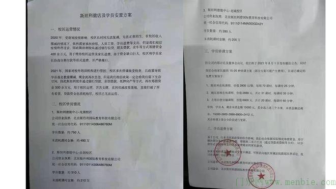 刘先生说,7月31日,斯坦利所在的北京泰华龙旗购物中心贴出公告称,斯坦利拖欠房租一百万余元,现由于资金断裂终止经营。而就在7月31日之前,机构仍在正常授课,甚至还在宣传新的课程。