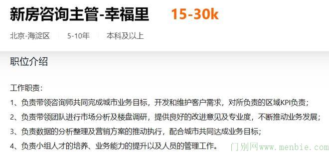 幸福里的新房咨询主管招聘信息