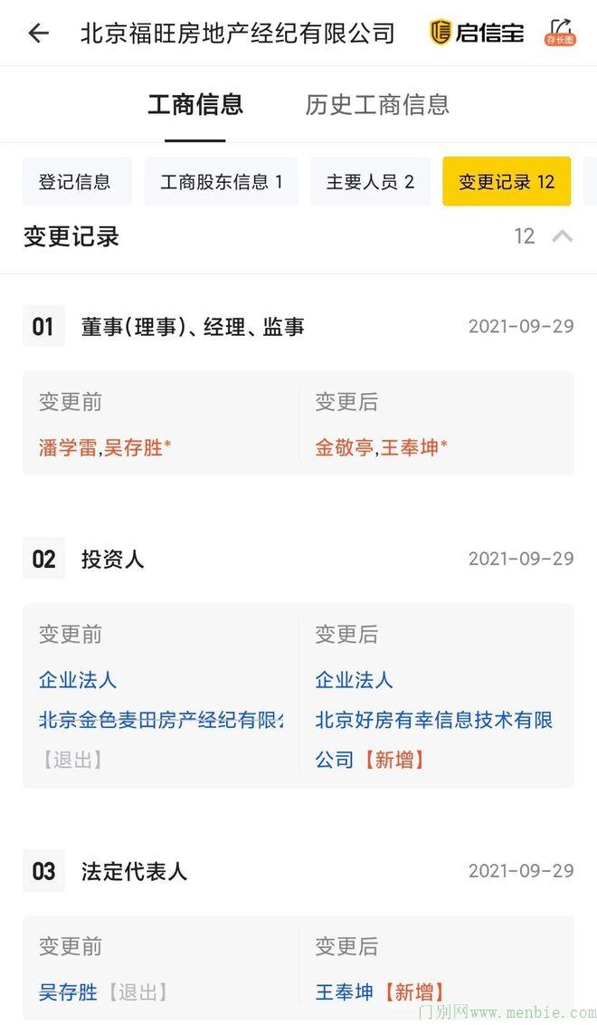 启信宝显示,9月29日,北京福旺房地产经纪有限公司(以下简称北京福旺)发生工商信息变更,北京金色麦田房地产经纪有限公司(以下简称北京麦田)退出,唯一股东变成了北京好房有幸信息技术有限公司(以下简称北京好房有幸),而好房有幸正是字节跳动旗下公司。