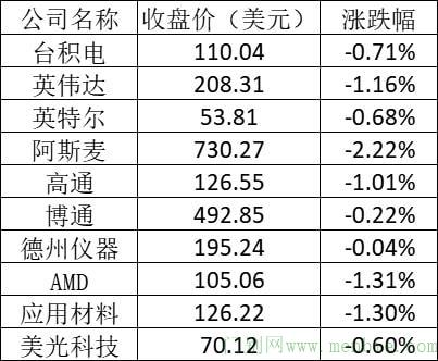 美股中的主要芯片股表现如下: