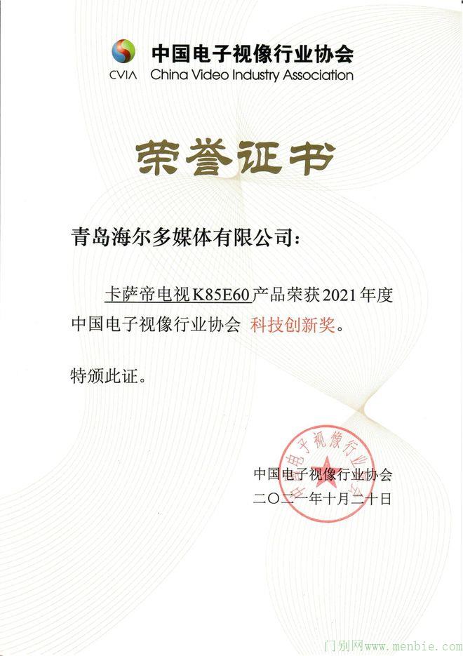 10月20日,由中国电子视像行业协会主办,以“创新科技 无界未来”为主题的第十七届中国音视频产业大会在深圳召开。会上揭晓了2021中国电子视像行业协会科技创新奖,其中,卡萨帝电视K85E60获得2021年中国电子视像行业协会产品创新奖。