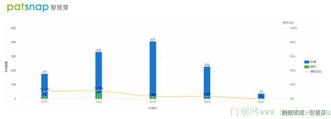 图1 阿里车路协同及相关产业专利申请趋势(数据来源:智慧芽全球专利数据库)
