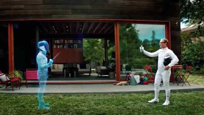 图:Facebook首席执行官马克·扎克伯格与奥运金牌击剑运动员在现场直播的元宇宙中击剑,他当时宣布Facebook更名为Meta