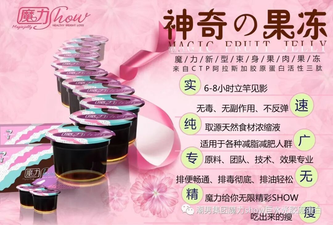 5:魔力show不是简单的果冻,他是吸油果冻。不单讲究材料配比,也是结合了人体五行进行的配伍。长秋膘是爱美人士最怕最烦心的事,一夏天的节食瘦身被秋膘一贴前功尽弃,但随着天气的渐凉,胃口就出奇的好,这秋膘想不要都难。魔力show果冻,在秋冬季节服用,减肥的同时防止长“秋膘”,效果是平时的两倍。