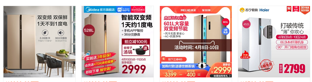 此外,由于产品大同小异,基本上每个类目都有相似的风格,导致推广主图同质化严重,商家只能通过加底色或堆砌卖点来销售产品。想要寻找突破的差异化,可以从背景、颜色、字体、卖点多少、图片形式等方面表现出差异化。一般情况下,在静态的产品上加入动态视觉,可以产生吸睛的效果。