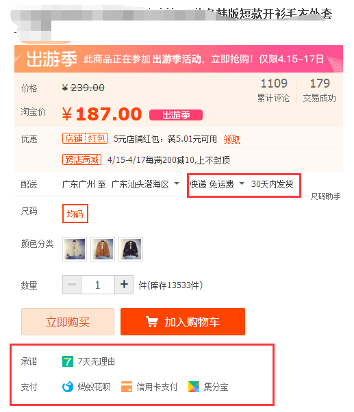 如遇到大促期间订单量大,对物流造成一定影响时,一定要及时跟顾客进行说明,也可以提前将可能会遇到的问题做成海报在店铺显眼位置上进行说明,打消顾客的疑虑,避免因物流问题引发的DSR评分下降。