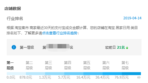 店铺的层级是由店铺在30天内的成交金额所决定的,你所处的层级决定了你竞争地位如何、激烈程度,当然更关键的是决定你的自然搜索流量天花板。店铺层级会直接影响到你的店铺排名也就是自然搜索流量的比例。目前淘宝为了公平起见,店铺层级越高,证明店铺实力越强,因此分到的流量就会越多。因此我们不同的店铺层级,分到的流量是不同的,如果你是处于第一、二层级的底层卖家,那么就意味着将会有70%的卖家去抢30%左右的流量,可见竞争会有多么的激烈。