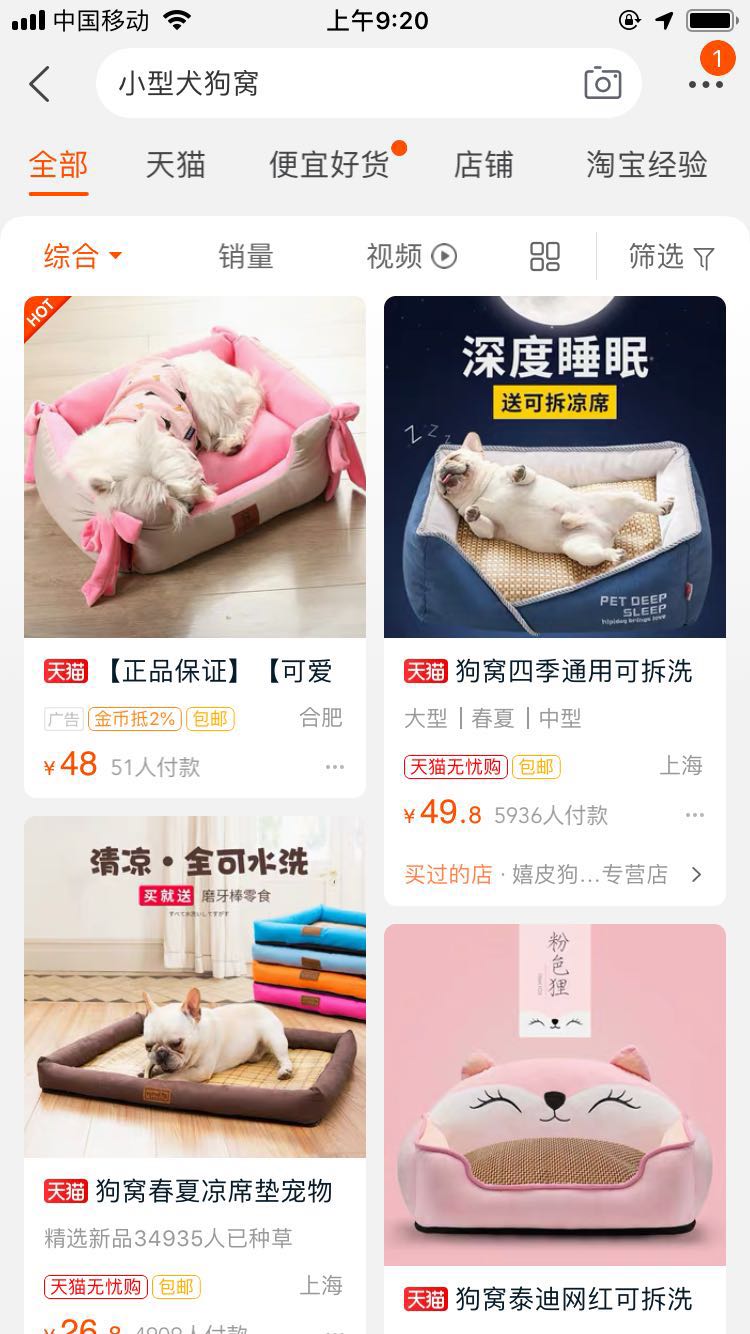 主图的作用不仅仅只是美观,更多的是在于体现出商品关键信息,也就是你的主要关键词(进店的流量最大的关键词)是什么,想要主图点击率高,那么就要将这个关键词体现出来。而我们也可以从生意参谋中消费者搜索的关键词中知道他们在关注什么,需要什么。举个例子,如果你的关键词是小型犬狗窝,主图中可以展示一只小型犬在狗窝中的样子,或者直接用数字来表达尺寸,都是可以让消费者很清晰的知道你所要出售宝贝的具体样子。