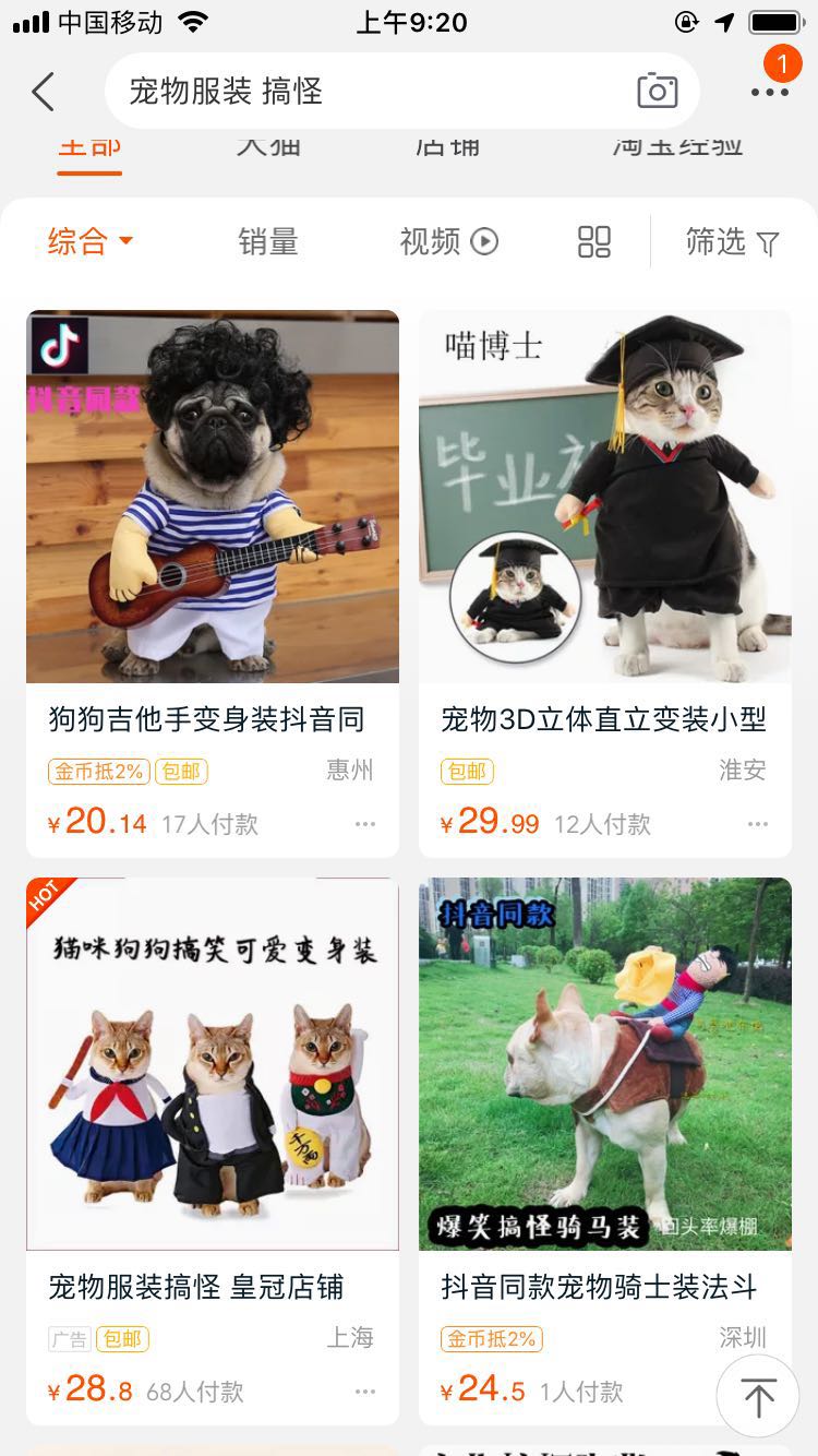 往往我们在淘宝中搜索商品时会带有一定的预期,这个体现在关键词中描述性词语,比如你想要购买一件“搞怪宠物衣服”,那么在浏览搜索结果时是不是那些符合“搞怪”这个关键词的商品比较吸引你呢?因此尽量让主图展示的内容及风格和宝贝的主关键词,大流量词,特别是成交词一致。