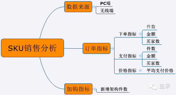 SKU数据指标共分为三个部分:数据来源丶订单指标丶加购指标;