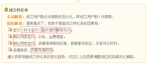 建议卖家根据成交转化率的变化趋势,对应以上各因素调整相应的店铺优化策略。