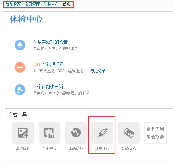 登录淘宝 - 进入卖家中心 - 宝贝管理 - 体检中心 - 订单体检
