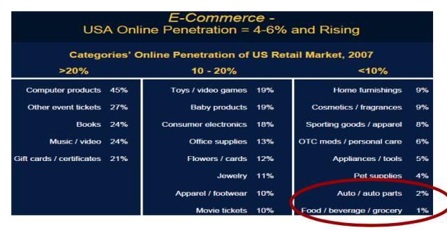 这张图是2008年的调查数据,讲的是2007年美国各个品类的渗透率,这张图一直到2013年我们才觉得应该这样看,如果2008年我们看懂了就会非常坚决地调整。