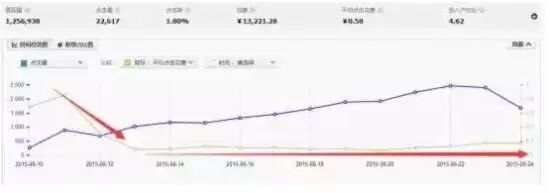 PPC经过几天的波动之后就一直稳定并且是低于行业市场平均出价的,无线端的流量在稳定上升,占比最多,主要的操作是避开pc端关键词的竞争,加大无线端推广测试;引入更多的无线端流量进行测试效果反馈,在关键词的质量得分普遍比较高的情况下,拉低时间折扣的同时加大无线端和站外的投放力度,控制pc端的流量同时,加大无线端流量促进转化,拉低整体的ppc,提高点击率,引进更多的流量;
