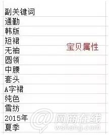 3丶结合宝贝本身的属性(副关键词),把可以作为侯选主要竞争关键词的词复制粘贴到EXCEL表格当中。