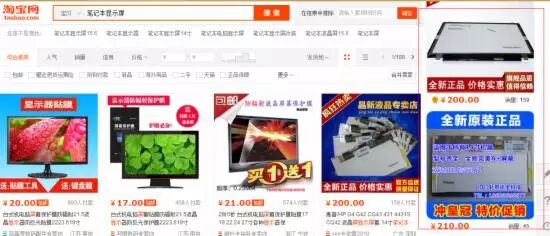 我们以笔记本电脑屏幕为例,来分析下小类目该怎么推广。纵观该类目在淘宝上出现的图片宣传,可以用一个词来形容,就是“粗暴”!那么,“粗暴”之下,我们该如何体现自身的优势呢,从下面几个步骤可以进行: